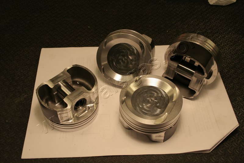 Non potevo lasciare le bielle e i pistoni di serie lancia... noooo, vuoi non andare a complicarsi la vita con bielle allungate, pistoni con altezza di compressione ovviamente ridotta e spinotto centrato? E dire che i componenti di serie non sono malaccio per prestazioni comunque oneste. Il minore spazio disponibile sul cielo a causa della biella lunga, ha determinato una discreta riduzione del volume in camera di combustione. Diminuzione solo in parte compensata con uno stock di lavorazioni sulla testa. Vabbé viaggiamo un filino piů compressi tanto non si soffia tantissimo con questo turbo.
